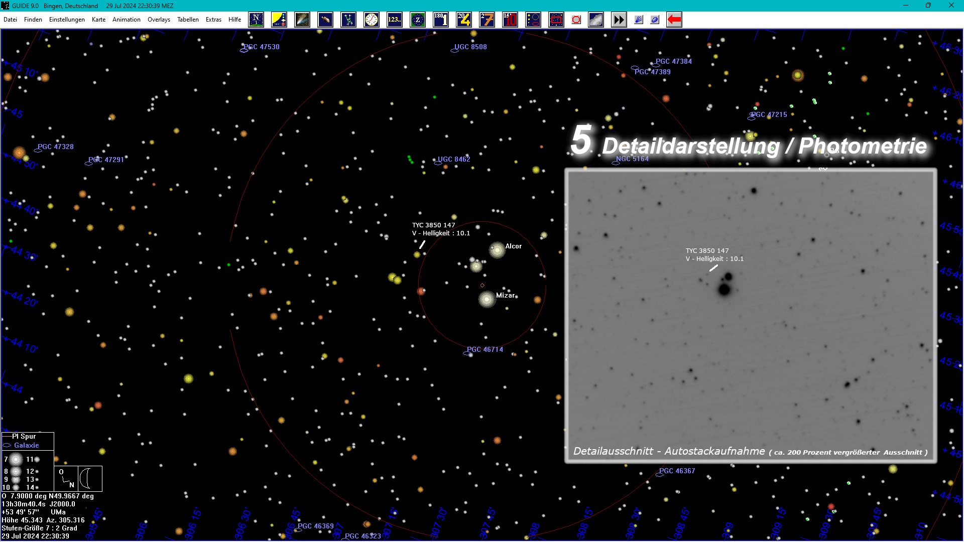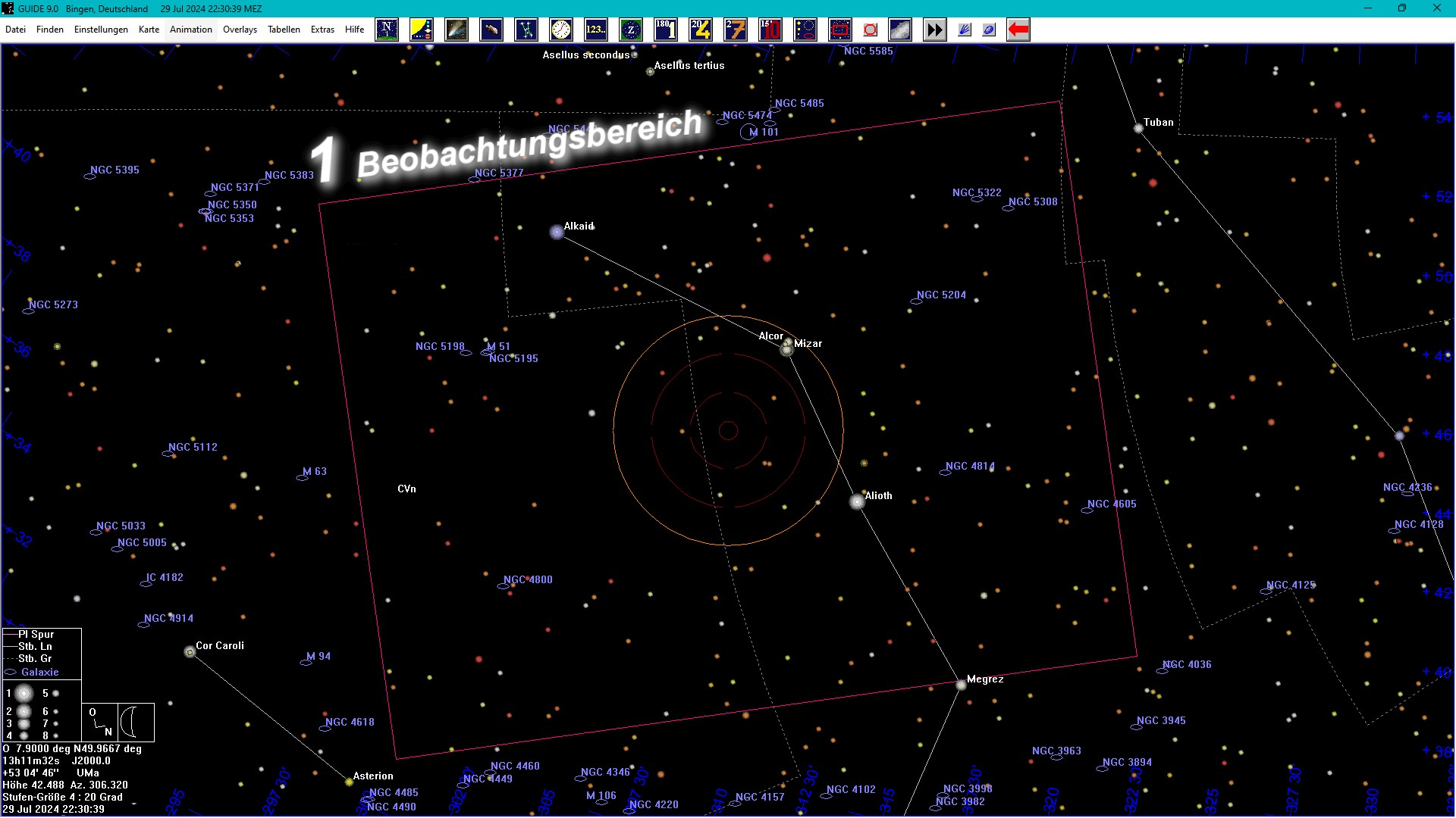 1 - Infos zum Beobachtungsbereich laut Sternkarte